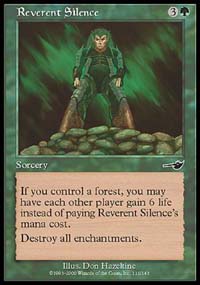 The key problem card after sideboarding is green's arch nemesis, good old Perish. Because of Perish, play again becomes slightly conservative. Instead of playing everything, no more than one big Perish target should be in play at any one time unless something strange is going on. Kavu Chameleon lets the attack go on without trouble here. Against black decks, generally it's best to save one mana to make the Chameleon black against removal but it costs too much time to wait for more than that.
